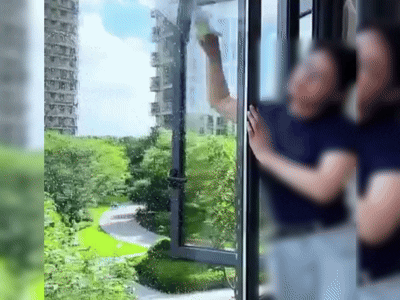 مع منظف الزجاج القابل للتمديد، تنظفين النوافذ العالية بكل سهولة… وأنتِ واقفة بكل راحة وأمان!